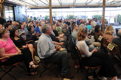 Michael Pollan speaks to Chris Bedford at the fundraiser for Edible Avalon and the HomeGrown Festival & Summit