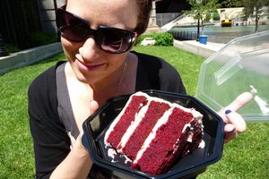 Tweet, a brunch-spot in Chicago, serves up colossal slices of red velvet cake. (Pardon my goofy mug.)