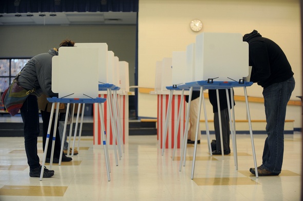 Voters cast their ballots at Haisley Elementary School in Ann Arbor this morning.