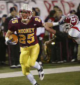 Michigan football recruit Ray Vinopal scores in a state semifinal football game in November while playing for Cardinal Mooney High School in Youngstown, Ohio. (Photo courtesy of Robert K. Yosay | The Vindicator)