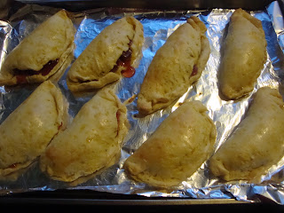 Place onto a baking sheet, and repeat with the remaining pasties. Brush the pasties with the remaining egg and bake for 20-25 minutes until golden. Let cool completely.