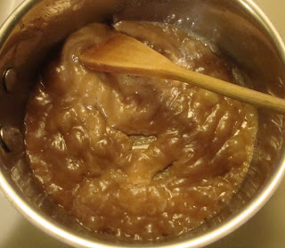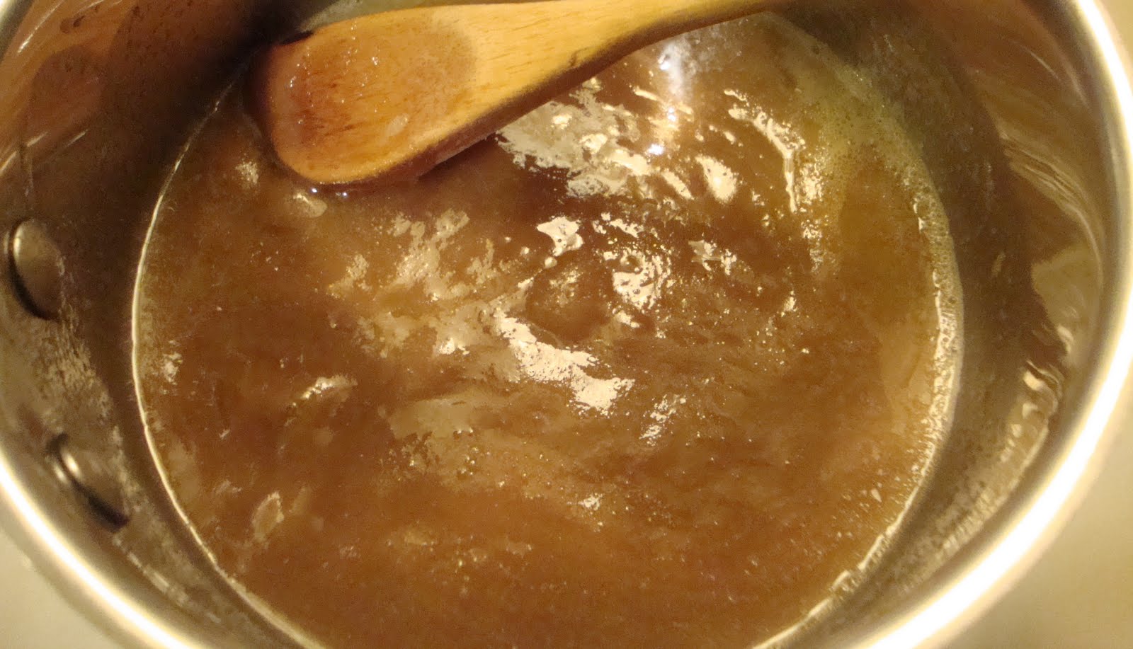 In a medium saucepan (because it bubbles up), melt the brown sugar and the butter together over medium heat until the mixture bubbles. Once it's bubbling, turn the heat to medium-high and stir constantly until the caramel thickens, lightens a bit in color, and pulls away from the sides of the pan — approximately 2 minutes.