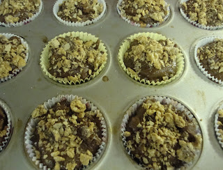 And let me tell you, it was a fine substitution! Truly, these were exceptional — moist and tender, with the contrasting crispness of the cookie crumbs on top. The flavor was extraordinary — rich and luscious. I tried the first one while it was still warm, so the chocolate chips were even melted... sigh.