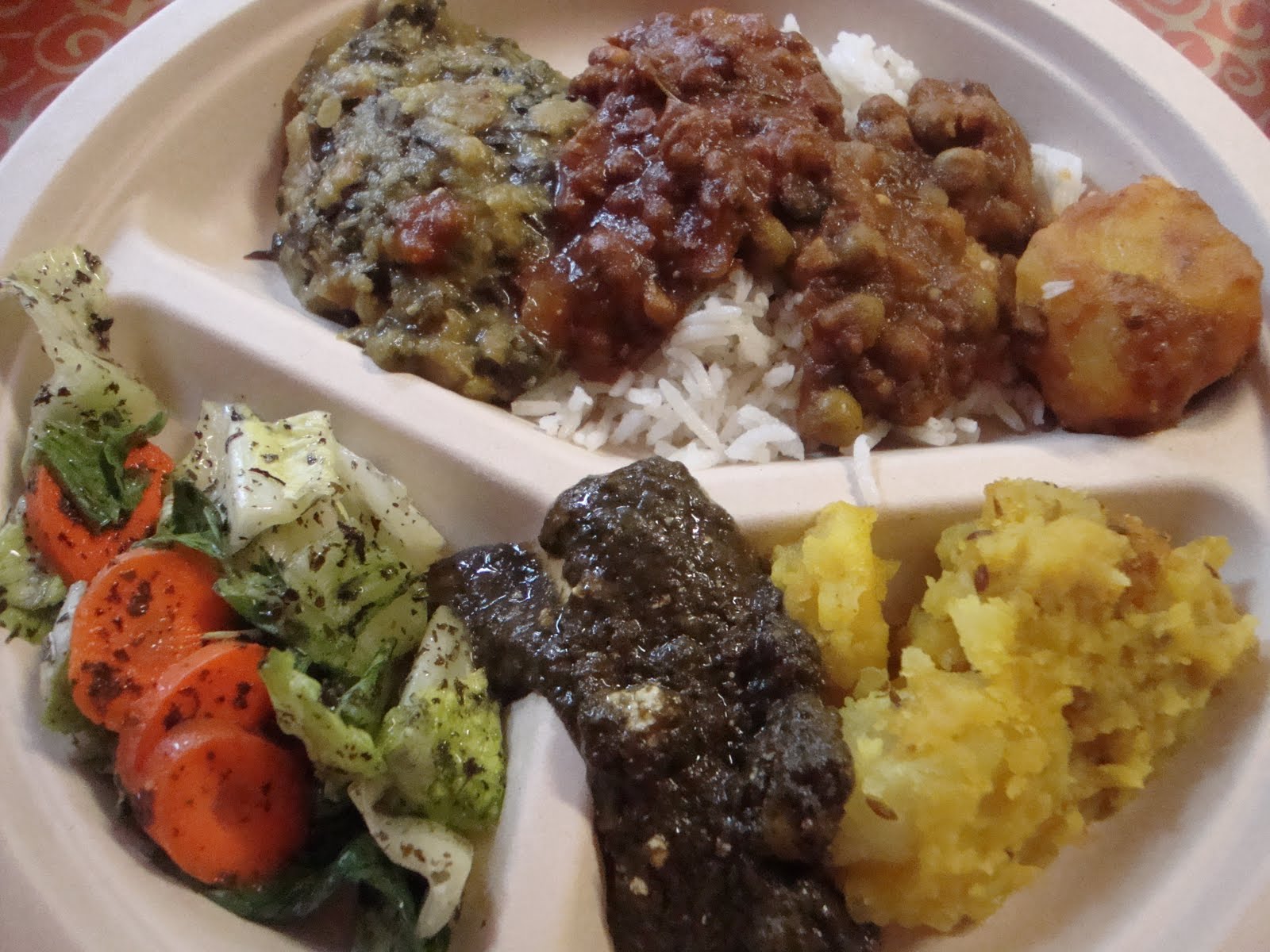 Earthen Jar's menu is primarily vegan, including macaroni and cheese (I guess to keep the kids or picky eaters happy?); but there are a very few dairy products, such as a yogurt-based raita and the paneer which is in a couple of the dishes. There are also desserts (puddings and halwa), which we didn't get to after our immensely delicious dinner indulgence.