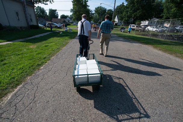 A man uses a wagon to cary several take out chicken dinners during the 60th Manchester Chicken Broil. Courtney Sacco I AnnArbor.com /calendar/photologue/photos/_1_/cache/071813_Manchester_Chicken_Broil_CS-27_fullsize.JPG