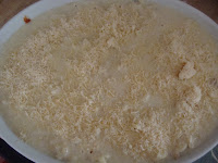 Pour the sauce over the pasta, spreading to make sure everything is covered. Sprinkle the shredded parmesan over the top.