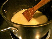 Susanne has made this recipe adding cream and lots more butter to the finished grits. Her motto "When in doubt, add more butter!" is similar to that of her favorite chef, Chef Paul Prudhonne. Of course everyone adores her cooking--maybe it's because of this buttery predilection. At my request, she reduced the butter and eliminated the cream in this recipe. Throw caution to the wind and add more butter and cream, if you like, but I thought this dinner was close to sublime and plenty rich for my palate. Aunt Jane most happily agrees!Yield: 4-5 servings Time: 50 minutes Cost: apx. $18.50 (using $10.00# shrimp) Ingredients