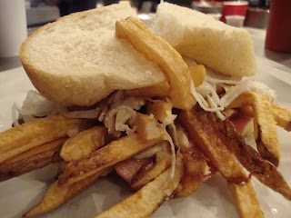 The cole slaw was neither too tart nor too sweet, and complemented the saltiness of the ham quite well. The french fries were an ideal pairing with the ham and the cheese. The variety of flavors and textures really united, rather than being disparate and disjointed; these ingredients weren't just thrown together for novelty's sake, but truly formed a whole.