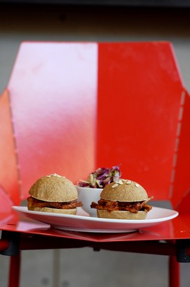 The Lunch Room's BBQ tofu sliders are made of thinly sliced and flash baked tofu in BBQ sauce on oat-wheat buns made in house and accompanied by a side of Thai slaw. Melanie Maxwell | AnnArbor.com /calendar/photologue/photos/00 Lunch Room/cache/090513_ENT_LunchRoom_MRM_05_fullsize.JPG