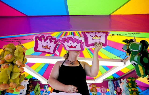 Game jock Rachel Parsons hangs stuffed animal prizes for the Jaycees' Carnival on Tuesday, June 25. Daniel Brenner I AnnArbor.com /calendar/photologue/photos/_Jaycees Carn Prep/cache/06252013_ENT_CarnivalPrep_DJB_0545_fullsize.JPG