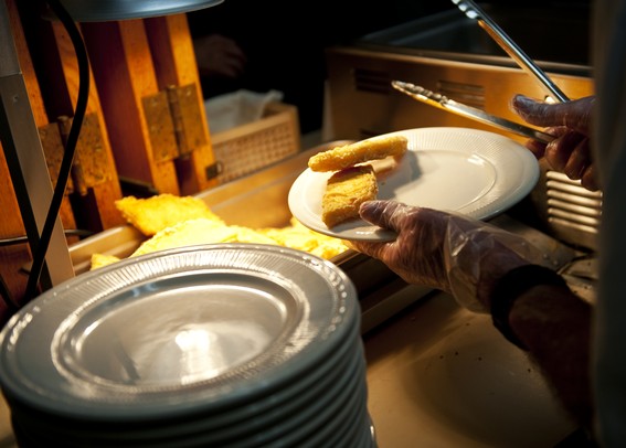 Food is handed out on sustainable plates at St. Frances Church on Friday, March 8. Daniel Brenner I AnnArbor.com /calendar/photologue/photos/_Fish Fry Plates/cache/03082013_NEWS_FishFrySustainability_DJB_0348_fullsize.JPG