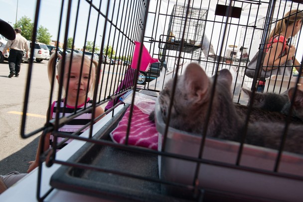 2-year-old Audrey Metropulos of looks at kittens during an "adopt-a-thon" at Petco in Ann Arbor, Saturday, July 20. Courtney Sacco I AnnArbor.com /calendar/photologue/photos/_1_/cache/072012_adopt-a-thon_CS-3_fullsize.JPG