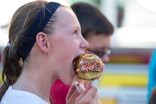 Vashti Fleming, age 11, bites into a candy apple at the Chelsea Community Fair in Chelsea, Friday, August, 23. Courtney Sacco I AnnArbor.com /calendar/photologue/photos/_1_/cache/082313_Chelsea_Fair_CS-14_fullsize.JPG