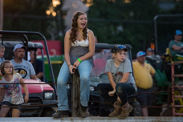 Left Kathryn Ford, age 16, and right Cami Ford, age 12, watch the tractor pull at the Chelsea Community Fair in Chelsea, Friday, August, 23. Courtney Sacco I AnnArbor.com /calendar/photologue/photos/_1_/cache/082313_Chelsea_Fair_CS-33_fullsize.JPG