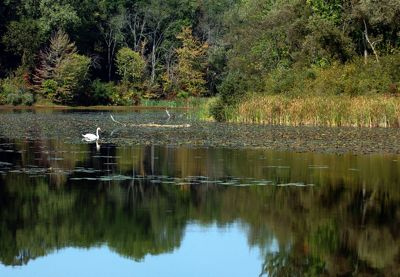 A big player in cleaning up the phosphorus in the river is the fairly new water detention pond reconstructed at Mary Beth Doyle Park. Formerly Brown Park, it was re-dedicated on June 1, 2008. http://bit.ly/2anEUQ The Washtenaw Co. Drain Comission owns the pond and spent two years transforming it from a wide spot in the creek to real wetland. The watercourse now forms a U-shape, with a dam limiting the flow to detain stormwater. Particles in the water have a chance to settle, and plants soak up the phosphorus well before creek reaches the Huron. Cranes and other waterfowl live in the fenced-off wildlife habitat. Walking paths, woods and a playground make it a pleasant spot between I-94 and Packard Road. Map: http://bit.ly/1aPDTw