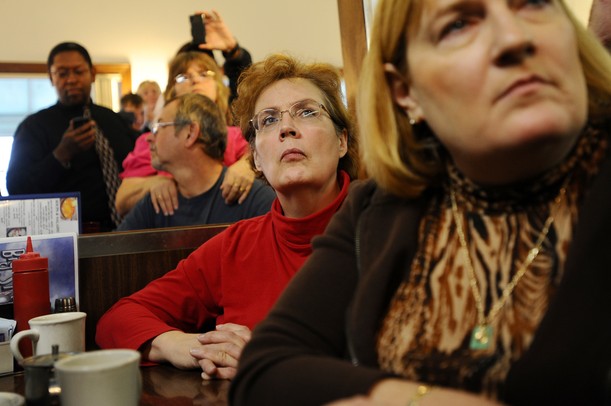 Supporters of Republican presidential candidate Herman Cain listen during a speech at the Big Sky Diner in Ypsilanti during a stop on Thursday morning. Melanie Maxwell I AnnArbor.com