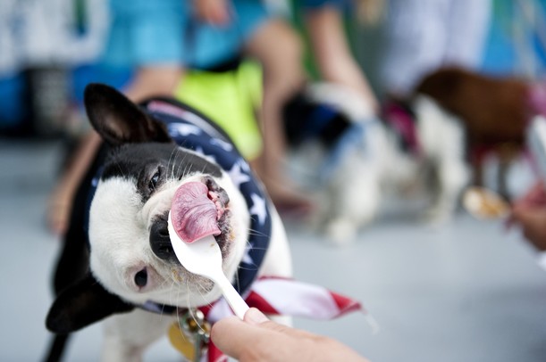 Boston Terrier Fenway licks peanut butter off a spoon during the 3rd annual Dog Days of Summer on Saturday, July 27. Daniel Brenner I AnnArbor.com /calendar/photologue/photos/_Dog Day Summer/cache/07272013_ENT_DogDaySummer_DJB_0146_fullsize.JPG