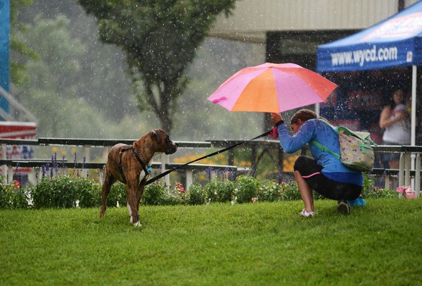 An owner and her dog in the rain during the 3rd annual Dog Days of Summer on Saturday, July 27. Daniel Brenner I AnnArbor.com /calendar/photologue/photos/_Dog Day Summer/cache/07272013_ENT_DogDaySummer_DJB_0260_fullsize.JPG