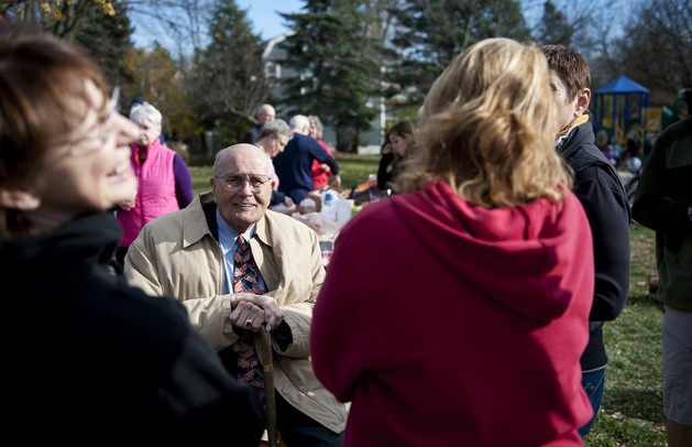 U.S. Rep. John Dingell, who is responsible for delivering nearly $14 million in federal funding for the Stadium bridges project, hangs out with residents of a nearby neighborhood gathered in Rose-White Park to celebrate the completion of the project on Sunday. Daniel Brenner I AnnArbor.com /calendar/photologue/photos/_Bridge Celebration/cache/11112012_ENT_BridgeCelebration_DJB_0001_fullsize.JPG