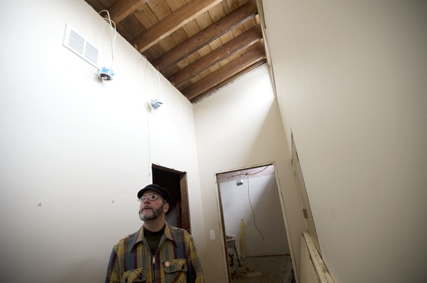 Light seeps in from above as homeowner Paul Hickman stands in the hallway during of the mid-century house he is renovating along with on the west side of Ann Arbor. Melanie Maxwell I AnnArbor.com