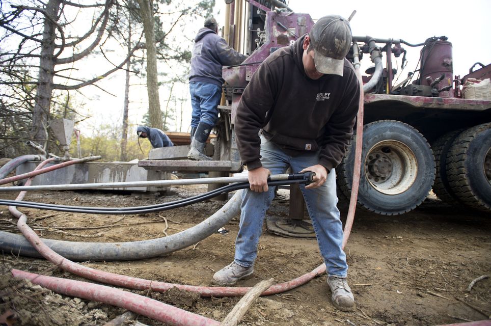 Cribley Drilling Company worker Matt Wing works in Paul Hickman's backyard as they crew installs a geo-thermal well. Melanie Maxwell I AnnArbor.com