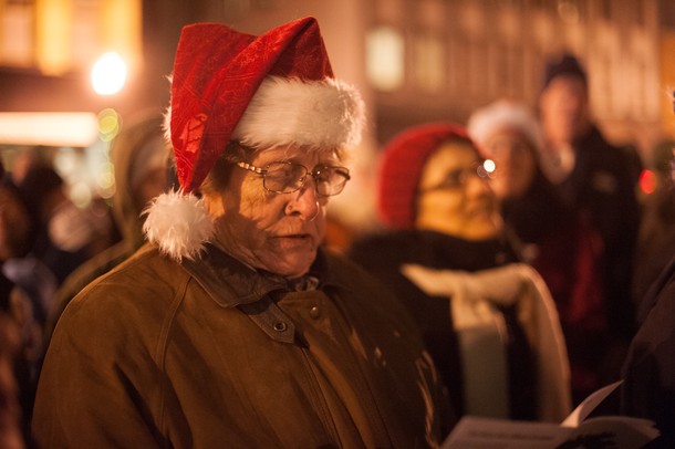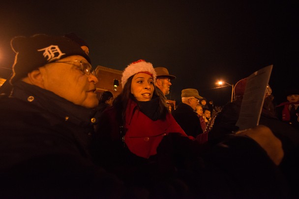 A large group gathered in the Depot Town section of Ypsilanti to sing christmas carols before the tree lighting ceremony Saturday night.