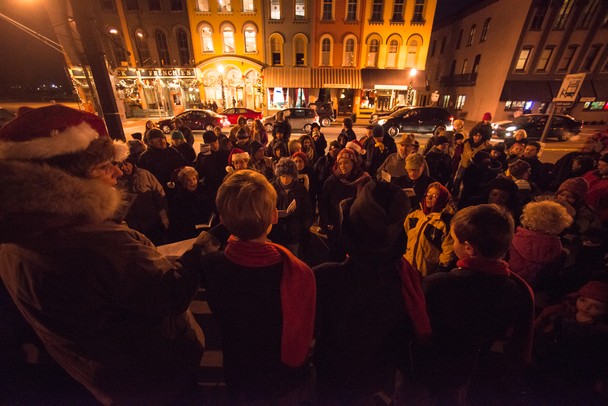 A large group gathered in the Depot Town section of Ypsilanti to sing christmas carols before the tree lighting ceremony Saturday night. Courtney Sacco I AnnArbor.com