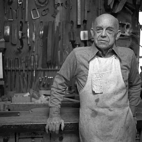 It's a pleasureable experience to hear the stories that wood craftsmen love to tell. You could not leave Grandpa Reiff 's shop without learning about a slice of his life. Fred Bauer's saga of 84 years is centered in his shop where he learned to measure a person's character as he would a fine piece of wood. - Dale Leslie