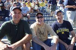 The top picture is wonderful because, though the meat-headed Easterners hog the forefront, just beside them is a diminutive Wolverine (who clearly uses his brain more than his muscles) who is, at that moment, plotting their demise. GO BLUE!