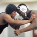 Pioneer's Marion Mitchenor, right, tries to gain the advantage of Belleville's Rashad Slater during the 189 lb weight class match. Angela J. Cesere /calendar/photologue/photos/!wrestling/cache/012112-AJC-wresling-dexter-pioneer-skyline-03_fullsize.JPG