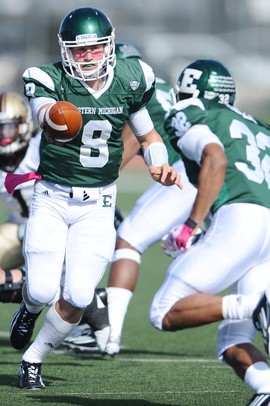 Eastern Michigan junior Alex Gillett runs the ball during the second half against Western Michigan at Rynearson Stadium on Saturday afternoon. Melanie Maxwell I AnnArbor.com