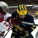 Michigan sophomore right wingman Zach Hyman makes contact with Miami defenseman Joe Hartman on Saturday, March 23. Daniel Brenner I AnnArbor.com /calendar/photologue/photos/_UM Beats Miami Hockey/cache/03212013_SPT_UM_Miami_Hockey_DJB_0413_fullsize.JPG