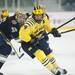 Michigan freshman left wingman Daniel Milne looks to pass in the game against Notre Dame on Friday. Daniel Brenner I AnnArbor.com /calendar/photologue/photos/_UM Notre Dame Hockey/cache/11162012_SPT_UM_NotreDame_Hockey_DJB_0785_fullsize.JPG