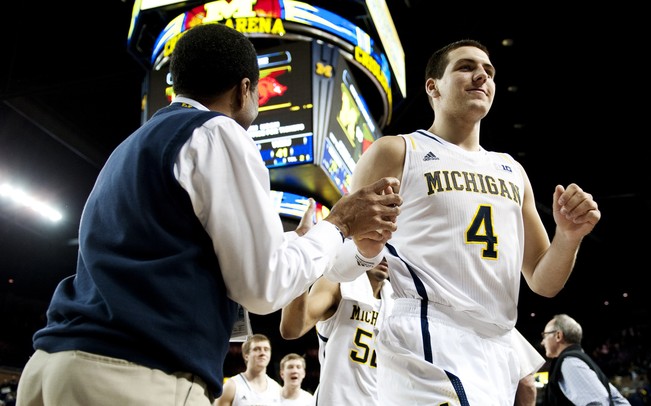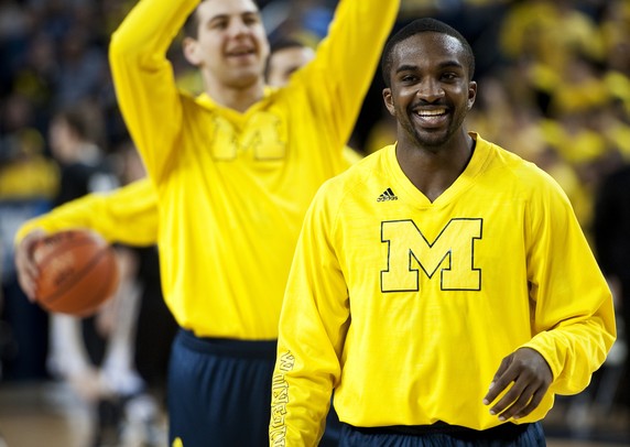 Michigan fifth-year senior Corey Personsmiles in warmups before the game against Western Michigan on Tuesday. Daniel Brenner I AnnArbor.com /calendar/photologue/photos/_UM Defeats Western/cache/12042012_SPT_UM_Western_BBall_DJB_0144_fullsize.JPG