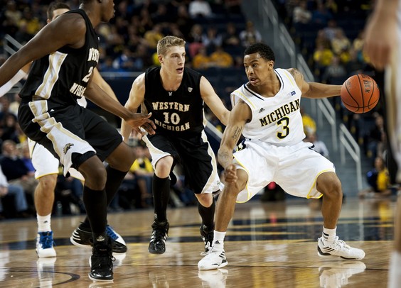 Michigan sophomore Trey Burke dribbles in the first half of the game against Western Michigan on Tuesday. Burke had 20 points and seven assists. Daniel Brenner I AnnArbor.com /calendar/photologue/photos/_UM Defeats Western/cache/12042012_SPT_UM_Western_BBall_DJB_0282_fullsize.JPG