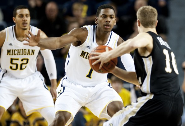 Michigan freshman Glenn Robinson III defends in the first half of the game against Western Michigan on Tuesday. Daniel Brenner I AnnArbor.com /calendar/photologue/photos/_UM Defeats Western/cache/12042012_SPT_UM_Western_BBall_DJB_0418_fullsize.JPG