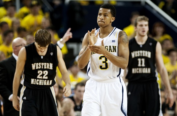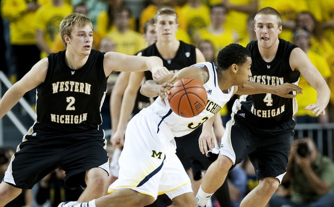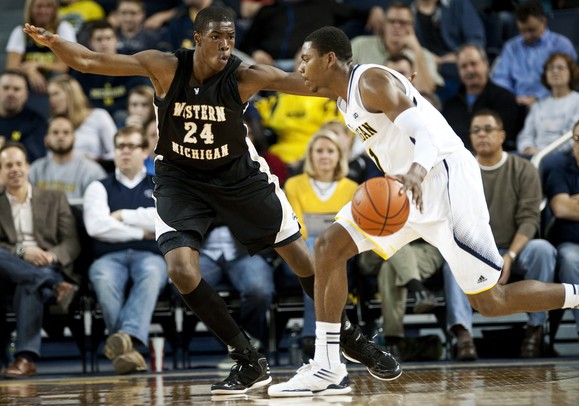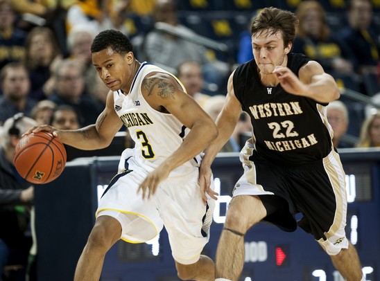 Western Michigan tries to defend Michigan sophomore Trey Burke on Tuesday. Burke had 20 points and seven assists. Daniel Brenner I AnnArbor.com /calendar/photologue/photos/_UM Defeats Western/cache/12042012_SPT_UM_Western_BBall_DJB_0544_fullsize.JPG