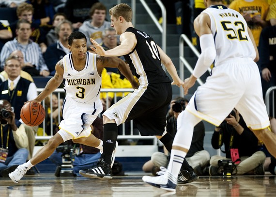 Michigan sophomore Trey Burke dribbles in the first half of the game against Western Michigan on Tuesday. Burke had 20 points and seven assists. Daniel Brenner I AnnArbor.com /calendar/photologue/photos/_UM Defeats Western/cache/12042012_SPT_UM_Western_BBall_DJB_0452_fullsize.JPG
