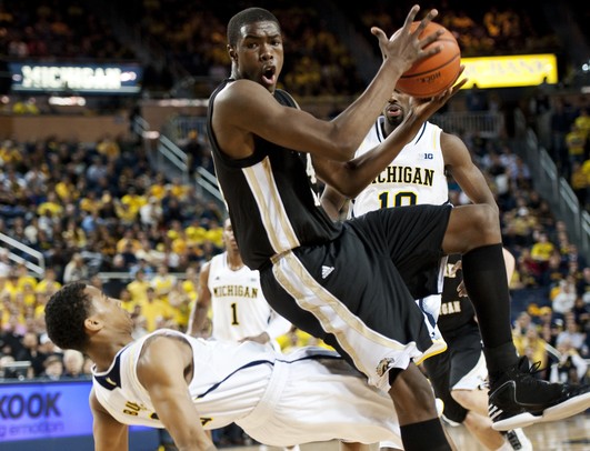 Michigan freshman Mitch McGary drives toward the rim in the second half of the game against Western Michigan on Tuesday. Daniel Brenner I AnnArbor.com /calendar/photologue/photos/_UM Defeats Western/cache/12042012_SPT_UM_Western_BBall_DJB_0781_fullsize.JPG