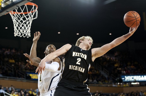 Western Michigan freshman Darius Paul fouls in the first half against Michigan on Tuesday. Michigan leads at halftime 35-21. Daniel Brenner I AnnArbor.com /calendar/photologue/photos/_UM Defeats Western/cache/12042012_SPT_UM_Western_BBall_DJB_0596_fullsize.JPG