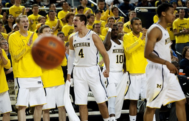 Michigan freshman Mitch McGary celebrates on the bench in the second half of the game against Western Michigan on Tuesday. Michigan won 73-41. Daniel Brenner I AnnArbor.com /calendar/photologue/photos/_UM Defeats Western/cache/12042012_SPT_UM_Western_BBall_DJB_0675_fullsize.JPG