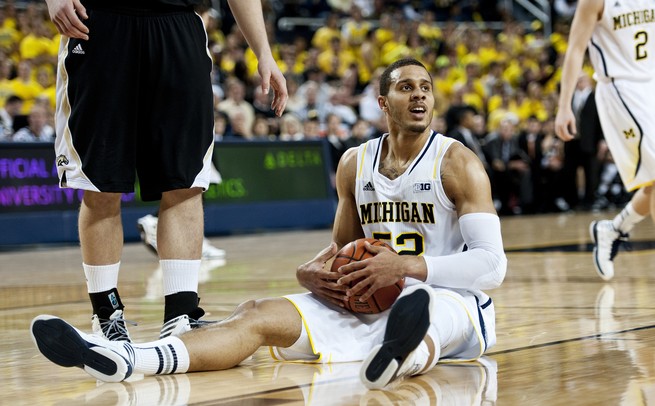 Michigan junior Jordan Morgan complains about a call in the second half of the game against Western Michigan on Tuesday. Daniel Brenner I AnnArbor.com /calendar/photologue/photos/_UM Defeats Western/cache/12042012_SPT_UM_Western_BBall_DJB_0694_fullsize.JPG