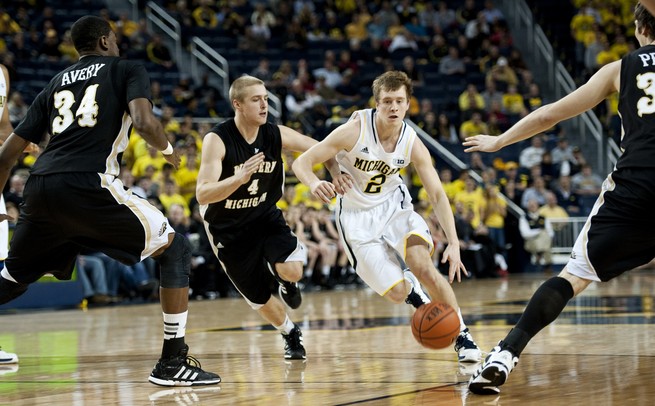 Michigan fifth-year senior Corey Person pulls up to shoot in the second half of the game against Western Michigan on Tuesday. Daniel Brenner I AnnArbor.com /calendar/photologue/photos/_UM Defeats Western/cache/12042012_SPT_UM_Western_BBall_DJB_0814_fullsize.JPG