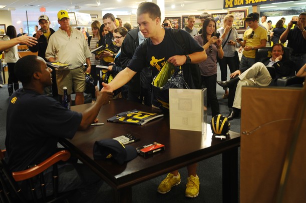 Fans greet Michigan football star Desmond Howard during an autograph signing at the M Den on Friday. Melanie Maxwell I AnnArbor.com