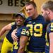Michigan defensive end Tom Strobel jokes around with teammate quarterback Brian Cleary while outside the Junge Family Champions Center on Sunday, August 11, 2013. Melanie Maxwell | AnnArbor.com /calendar/photologue/photos/00 Media Day/cache/081113_SPT_MediaDay_MRM_08_fullsize.JPG