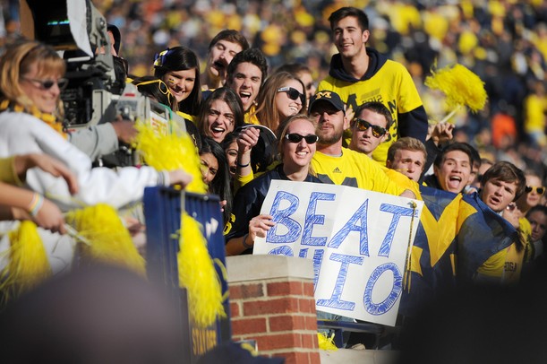Michigan fans hold a "Beat Ohio" sign in the endzone as they cheer in the fourth quarter at Michigan Stadium. Melanie Maxwell I AnnArbor.com /calendar/photologue/photos/00 UMIOWA/cache/111712_SPT_UMvsIowa_MRM_34_fullsize.JPG