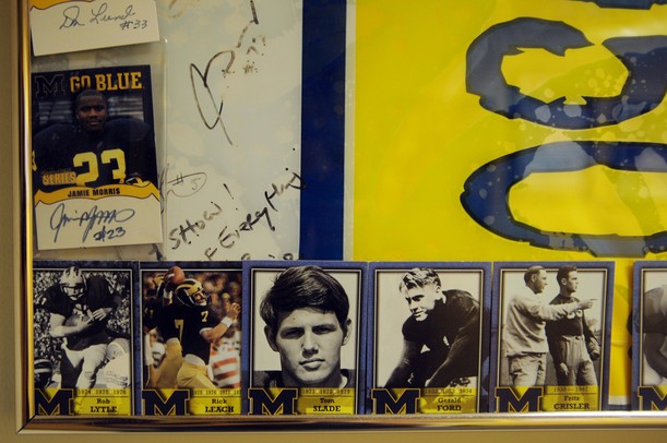 Trading cards and autographs are seen on displayed at WTKA 1050 during a fundraiser for Mott Children's Hospital at the station on Friday. Melanie Maxwell I AnnArbor.com